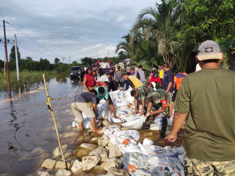 Anggota Koramil 1012-10/Dusun Selatan Peduli akan Kesulitan Rakyat, Sigap Membantu Gotong-Royong Menimbun Jalan yang Terputus Akibat Banjir