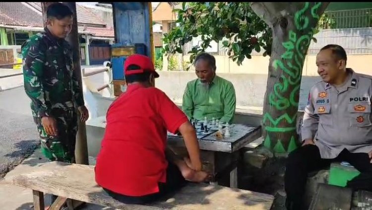 Dalam suasana santai, para aparat juga berbaur dengan masyarakat. Salah satunya terlihat saat mereka menjumpai warga bernama Bapak Suyono yang sedang bermain catur di bawah pohon rindang. Ia menyampaikan rasa senangnya atas kehadiran aparat yang aktif berpatroli.