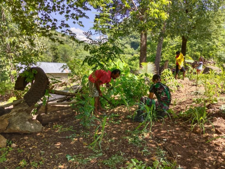 JAGOK.CO - Aplal/NTT - Membantu Masyarakat dalam memaksimalkan Hasil Panen, Pos Aplal Satgas Yonkav 6/Naga Karimata membantu Masyarakat membersihkan Ladang milik Bapak Lodi Tefa yang ada di Desa Aplal, Kec. Mutis, Kab.TTU Prov. NTT. (31/12/23)