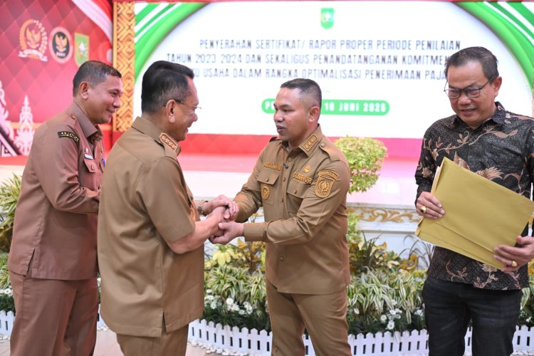 JAGOK.CO – ROHIL – Bupati Rokan Hilir (Rohil) H. Bistamam menghadiri secara langsung agenda penting penyerahan Sertifikat/Rapor Program Penilaian Peringkat Kinerja Perusahaan dalam Pengelolaan Lingkungan Hidup (PROPER) untuk periode penilaian tahun 2023–2024. Kegiatan ini dirangkaikan dengan penandatanganan komitmen bersama antara pemerintah daerah dan pelaku usaha dalam rangka optimalisasi penerimaan pajak daerah serta pelaksanaan rapat koordinasi strategis antara Pemerintah Provinsi (Pemprov) Riau dengan para pimpinan perusahaan besar yang beroperasi di wilayah Riau. Acara berlangsung pada Senin, 16 Juni 2025, bertempat di Gedung Balai Serindit, Pekanbaru, Riau.