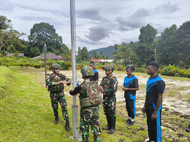 JAGOK.CO - KAIMANA, PAPUA BARAT - Dalam rangka membentuk karakter disiplin dan menanamkan nilai kebangsaan, Satgas Pamtas Kewilayahan Yonif 642/Kps melalui Pos Teluk Etna memberikan pelatihan baris-berbaris kepada para siswa SMP Negeri 1 Teluk Etna, Distrik Teluk Etna, Kabupaten Kaimana, Papua Barat, pada Selasa (4/6/2025).