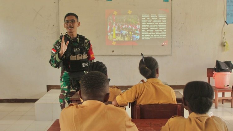 Sebagai Perwira Hukum (Pakum) Satgas, Letda Chk Fikri Rahadianto memberikan pembelajaran tentang Wawasan Kebangsaan, mengajak siswa-siswi memahami akar bernegara hingga melihat kemajuan pemikiran di negara lain. Hal ini diharapkan memberikan bekal kepada mereka sebagai pemimpin masa depan, baik di Papua, Indonesia, maupun Internasional.