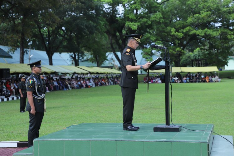 JAGOK.CO - Pematangsiantar - Pangdam I/BB, Mayjen TNI Mochammad Hasan, menyampaikan motivasi kepada 141 Bintara Remaja yang baru dilantik. Menurutnya, kebanggaan menjadi Prajurit TNI AD harus disertai tanggung jawab moral untuk meningkatkan kemampuan dengan disiplin dan loyalitas. Hal ini bertujuan agar mereka menjadi Prajurit yang tanggap, tanggon, trengginas, dan atlet tempur PRIMA.