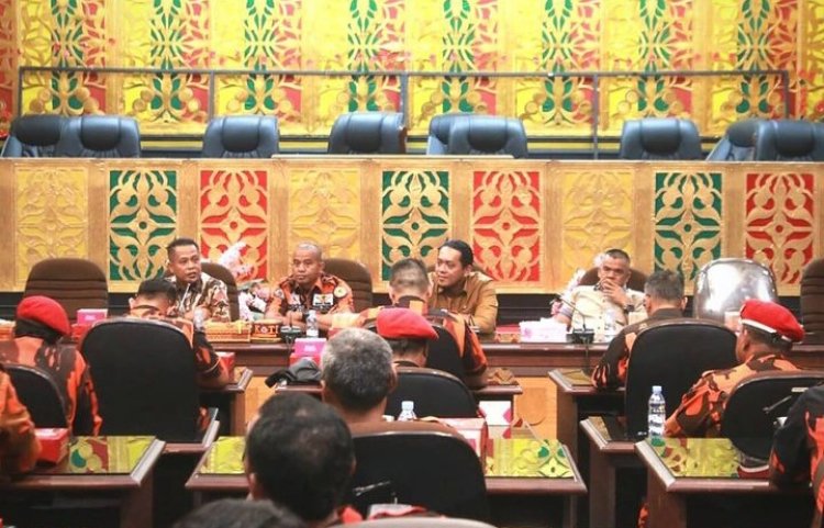 JAGOK.CO - PEKANBARU - Puluhan anggota Pemuda Pancasila (PP) berkunjung ke DPRD Kota Pekanbaru pada Selasa (17/10/2023), diterima oleh Ketua DPRD Pekanbaru Muhammad Sabarudi ST dan sejumlah anggota komisi. Kedatangan mereka dalam rangka silaturahmi dan menyatakan kesiapan mendukung kinerja DPRD Pekanbaru, terutama dalam pelaksanaan program K3.