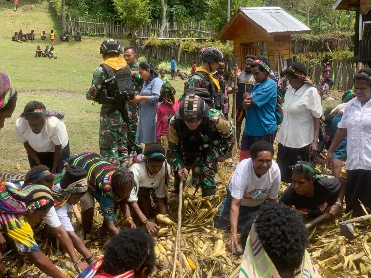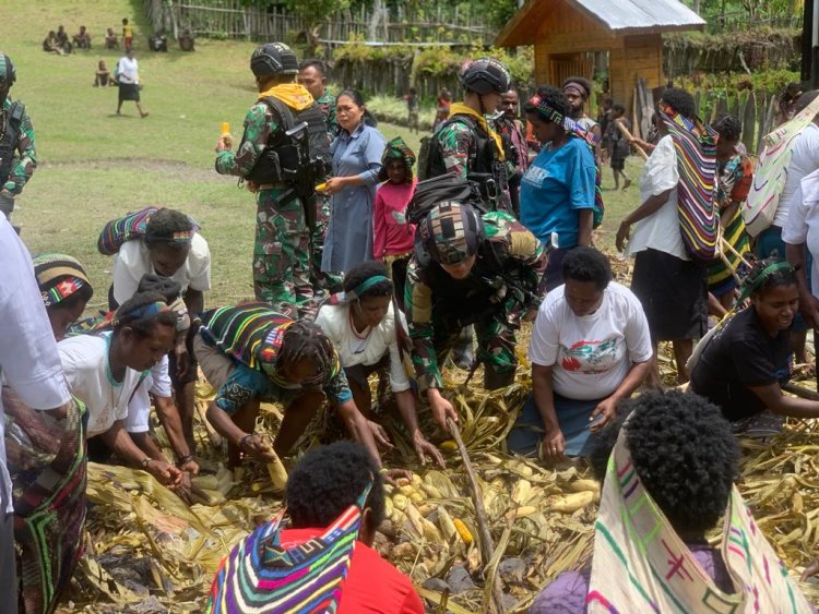JAGOK.CO - Puncak, Papua - Satgas Mobile Raider 300 Siliwangi memberikan kontribusi positif dalam mempererat hubungan antara aparat keamanan dan masyarakat setempat. Hal ini terlihat dalam partisipasi mereka dalam acara tradisional bakar batu bersama masyarakat Mayuberi, Distrik Ilaga Utara Kabupaten Puncak, Papua yang berlangsung meriah pada hari ini. Rabu (13-09-202)