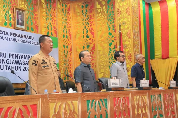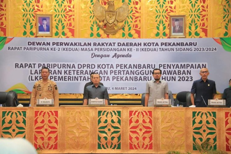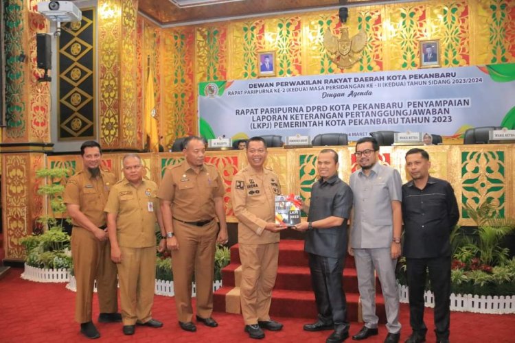 LKPj 2023 disampaikan melalui rapat paripurna yang dilaksanakan di Ruang Rapat Paripurna Balai Payung Sekaki Gedung DPRD Kota Pekanbaru pada Senin (4/3) siang.