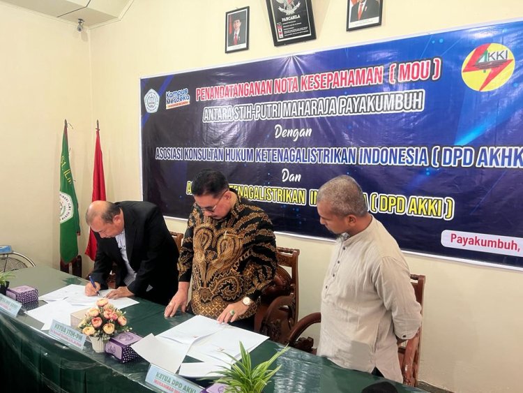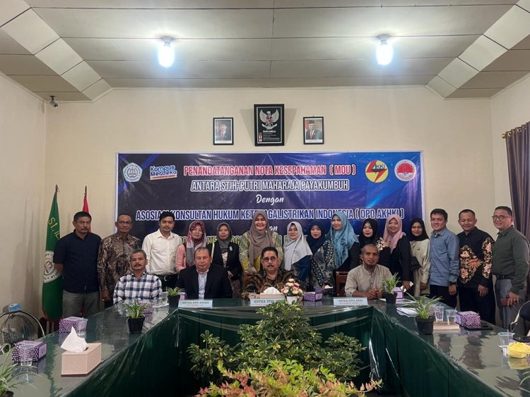 JAGOK.CO - Payakumbuh 25/10/23 Sekolah Tinggi Ilmu Hukum (STIH) Putri Maharaja Payakumbuh menjalin kerjasama dengan Dewan Pimpinan Daerah Asosiasi Konsultan Hukum Ketenagalistrikan Indonesia (DPD AKHKI) dan Asosiasi Konsultan Ketenagalistrikan Indonesia (AKKI) Sumatera Barat.