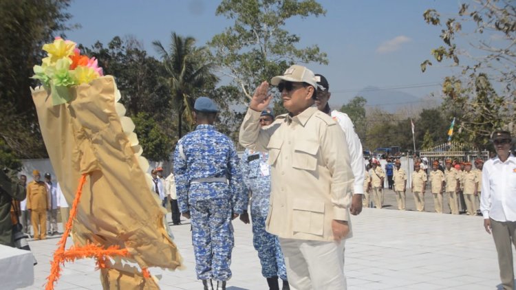 Tiba di Atambua, Menhan Prabowo Ziarah ke TMP Seroja Atambua Mengenang Pahlawan Gugur di Timor Timur